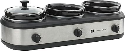 Culinary Chef, Triple Slow Cooker, Buffet Server 3 Pot, Food Warmer – Stainless
