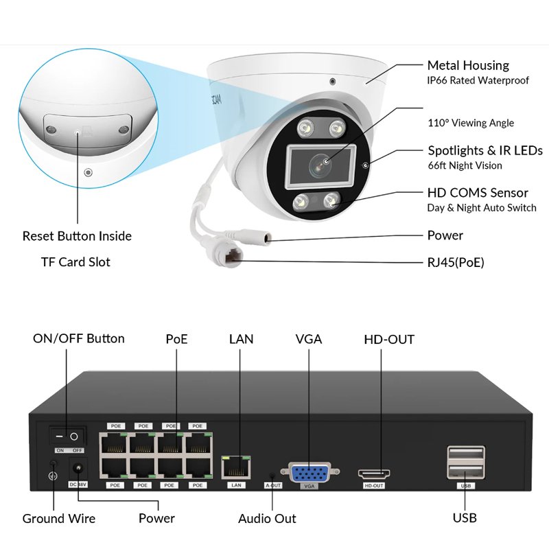 Foscam FN9108E-T4-2T 8 Channel Intelligent 5MP HD Cameras Kit with 2TB HDD and 4pcs 5MP Turret Cameras